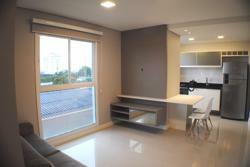 NOVO, NÃO HABITADO. 50M. DA AVENIDA BRASIL, LINDO E ESPAÇOSO APARTAMENTO COMPLETAMENTE MOBILIADO COM MÓVEIS SOB MEDIDA, DORMITÓRIO (completamente mobiliado), BANHO SOCIAL (mobiliado e com box em blindex), COZINHA AMERICANA (completamente mobiliada com fogão, geladeira, armários), CHURRASQUEIRA, GARAGEM, ESPERA PARA SPLIT, ÁGUA QUENTE, PISO PORCELANATO E LAMINADO, PERSIANA NA JANELA, ACABAMENTO DIFERENCIADO.